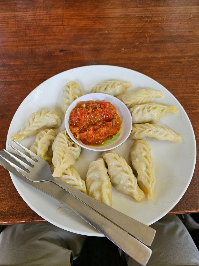 During the trek, we typically had momos for lunch and dal bhat for dinner. The phrase „Dal Bhat Power 24 Hour“ perfectly captures the essence of this traditional Nepali dish, which is believed to provide the sustained energy needed for long treks.